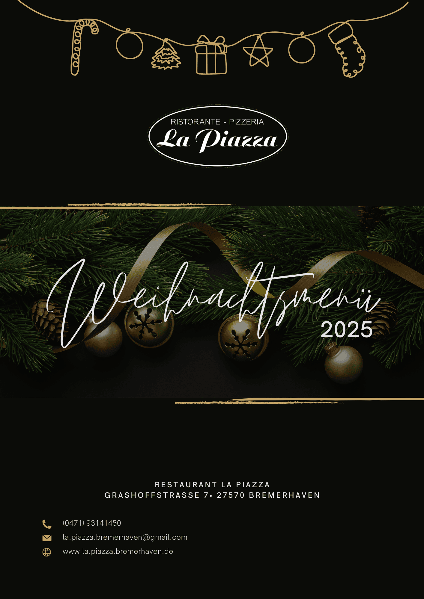 Vom 01. bis 26. Dezember servieren wir ein exklusives Weihnachtsmenü, das traditionelle Aromen mit italienischer Eleganz verbindet. Gemeinsame Zeit, gutes Essen – so schmeckt Weihnachten im La Piazza.