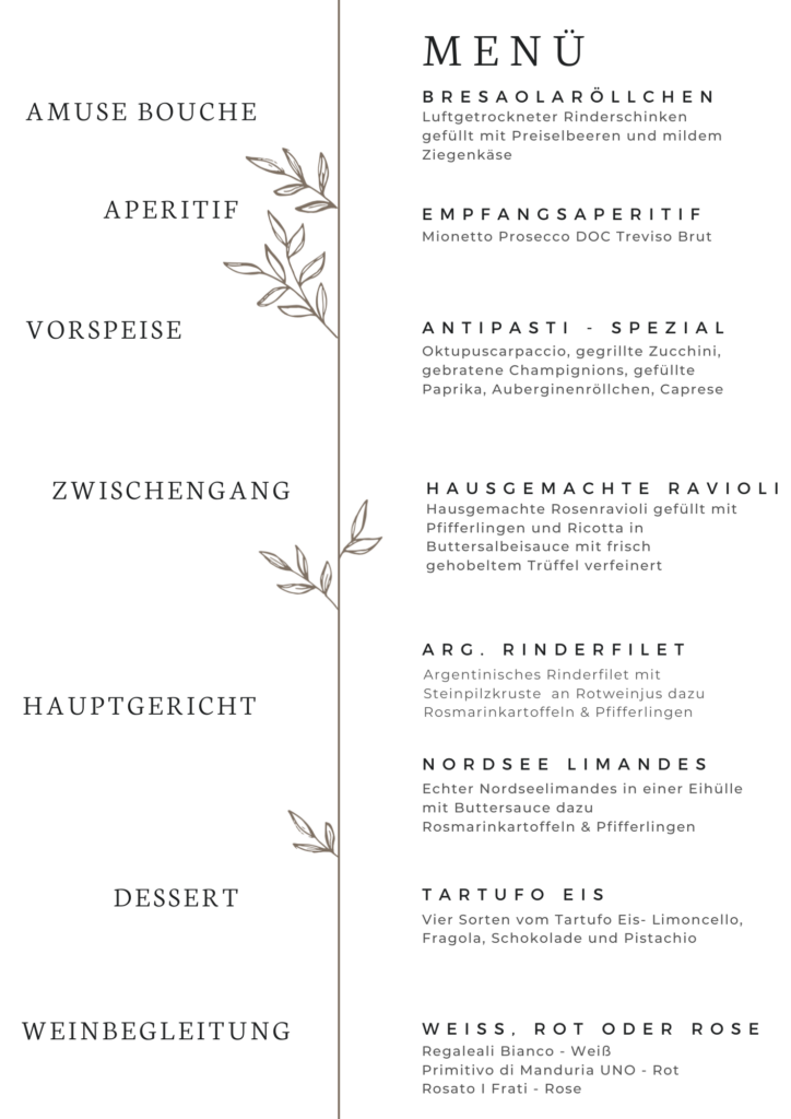 Mit viel Liebe zum Detail, hochwertiger Tischkultur und individueller Planung sorgen wir dafür, dass Ihr besonderer Tag unvergesslich wird.